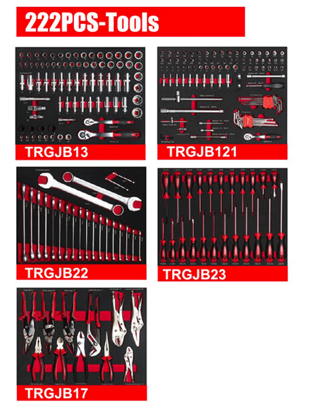 CARRO CON HERRAMIENTAS 222 PZS 5 GAVETAS DADOS Y LLAVES EN MM Y HERRAMIENTA GENERAL