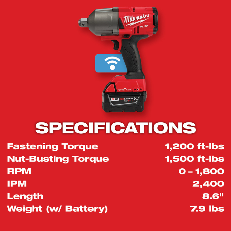 - M18 FUEL con tecnología ONE-KEY™ proporciona la llave de impacto más repetible de la industria