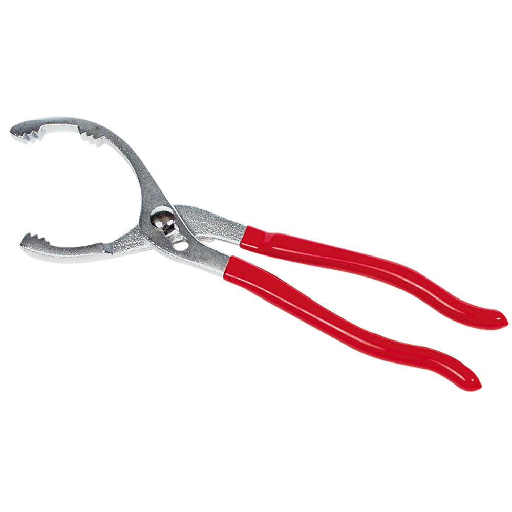 Alicate para filtros de aceite, fabricado en acero cromo vanadio, con mangos delgados para fácil agarre y comodidad.