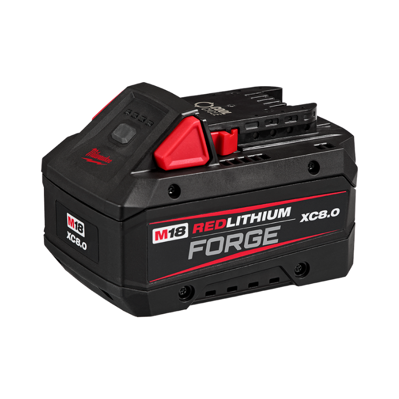 Nuestra batería M18™ REDLITHIUM™ FORGE™ XC8.0 entrega potencia HIGH OUTPUT™ 12.0 en un tamaño más pequeño, supercarga en 15 minutos hasta el 80 % y la vida útil más prolongada en comparación a las baterías REDLITHIUM™. REDLITHIUM™ FORGE™ son las baterías más potentes, de carga más rápida y de mayor vida útil de Milwaukee. La batería REDLITHIUM™ FORGE™ XC8.0 entrega la misma potencia que la batería M18™ REDLITHIUM™ HIGH OUTPUT™ HD12.0 en un diseño de tamaño más pequeño y menor peso.