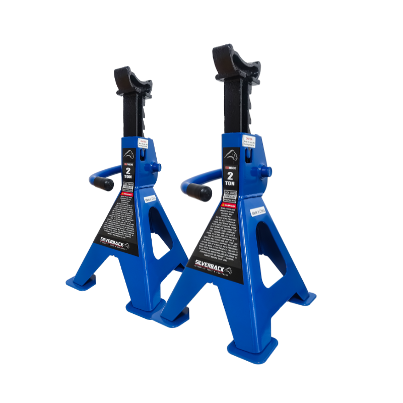 Burros o torres mecánicos para soporte de vehículos, con estructura de acero troquelado, manivela de ajuste reforzada, bases o silletas de hierro nodular, con terminado en barniz horneado.