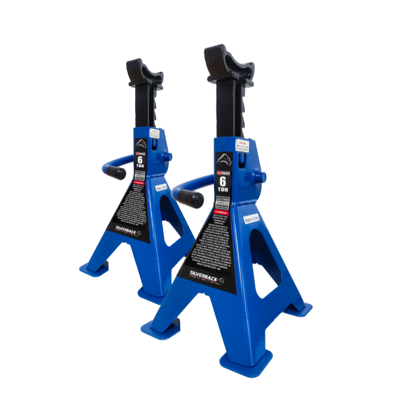 Burros o torres mecánicos para soporte de vehículos, con estructura de acero troquelado, manivela de ajuste reforzada, bases o silletas de hierro nodular, con terminado en barniz horneado.