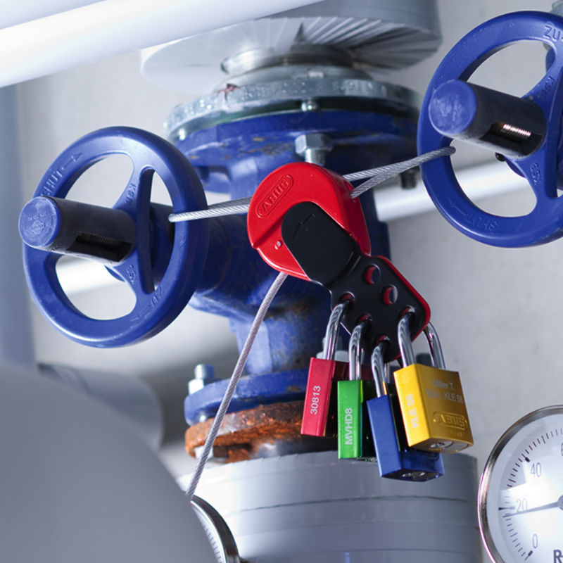 El cable puede utilizarse para asegurar válvulas, volantes manuales, herrajes o puntos de acceso contra accesos no autorizados. Los bloqueos para cables Safelex™ están disponibles con longitudes de cables diferentes, de 1 a 5 metros. El mecanismo de sujeción garantiza una fijación firme y puede reajustarse si es necesario.