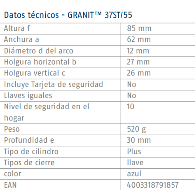 CANDADO GRANIT™ DE ACERO INOXIDABLE 62 MM (37ST/55 B/EFSPP)