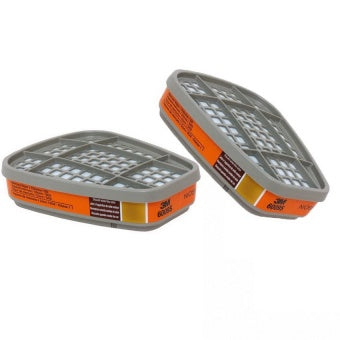 Cartucho que ofrece protección contra vapores de mercurio o gases de cloro con banda indicadora de vida útil.