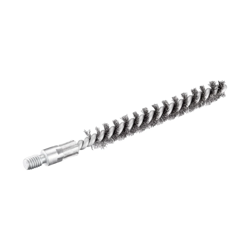 Cepillos limpia tubos de acero con filamentos de espiral simple y empalme roscado.