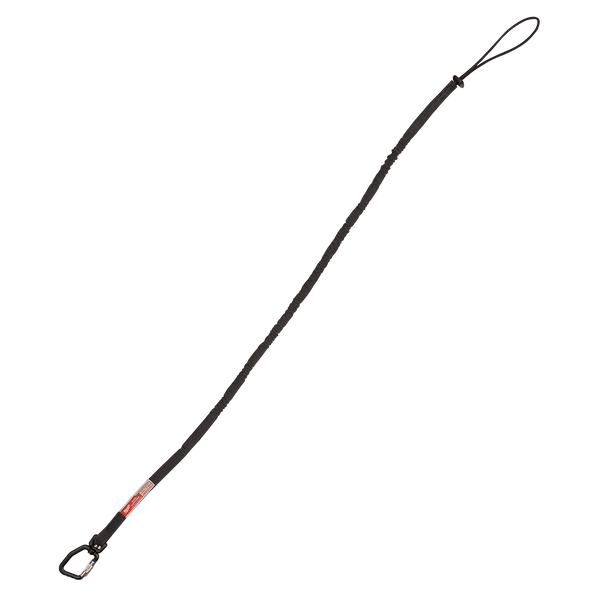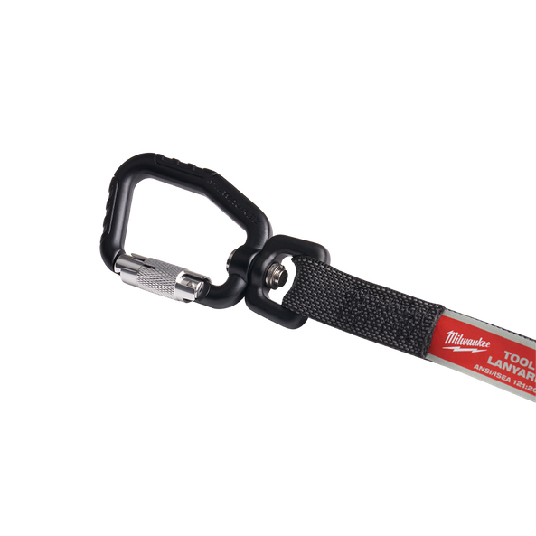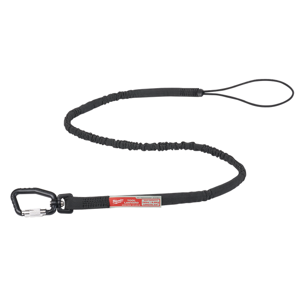 El cuerpo del cordón está diseñado para proporcionar la mejor absorción de impactos, desacelerando la herramienta gradualmente si ocurre una caída. Los mosquetones con bloqueo requieren doble acción para abrirse, lo que garantiza una conexión segura.