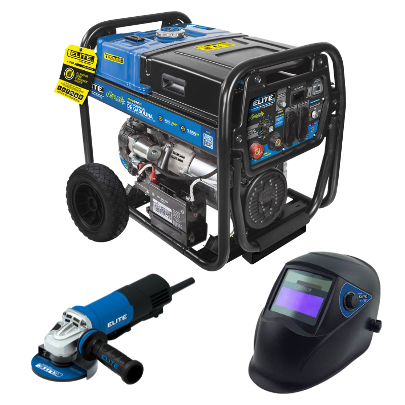 El Motosoldador a Gasolina Elite MSG235S combina soldadura MMA con generación eléctrica en un solo equipo robusto y confiable. Ideal para construcción, metalmecánica, agro e intervenciones en campo donde no hay red eléctrica estable, ofrece hasta 200 A de corriente de soldadura y 5,500 W de potencia máxima como generador. Incorpora arranque eléctrico, medidor VFT y apagado por bajo nivel de aceite para mayor seguridad y control.