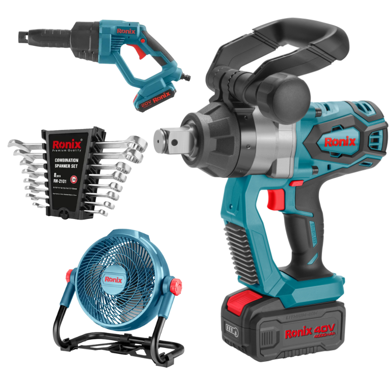 COMBO LLAVE DE IMPACTO DE 1" 2 BATERIAS Y CARGADOR + VENTILADOR + JUEGO DE LLAVES + HIDROLAVADORA A BATERIA