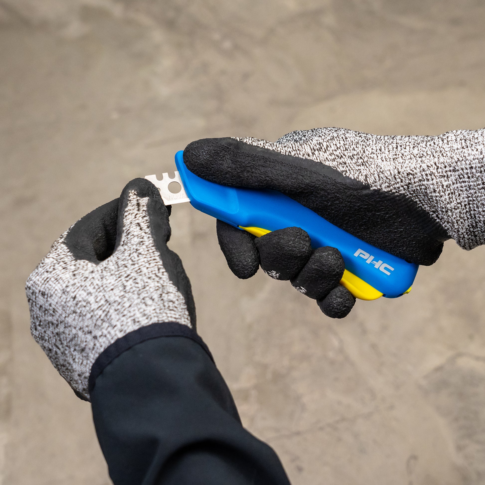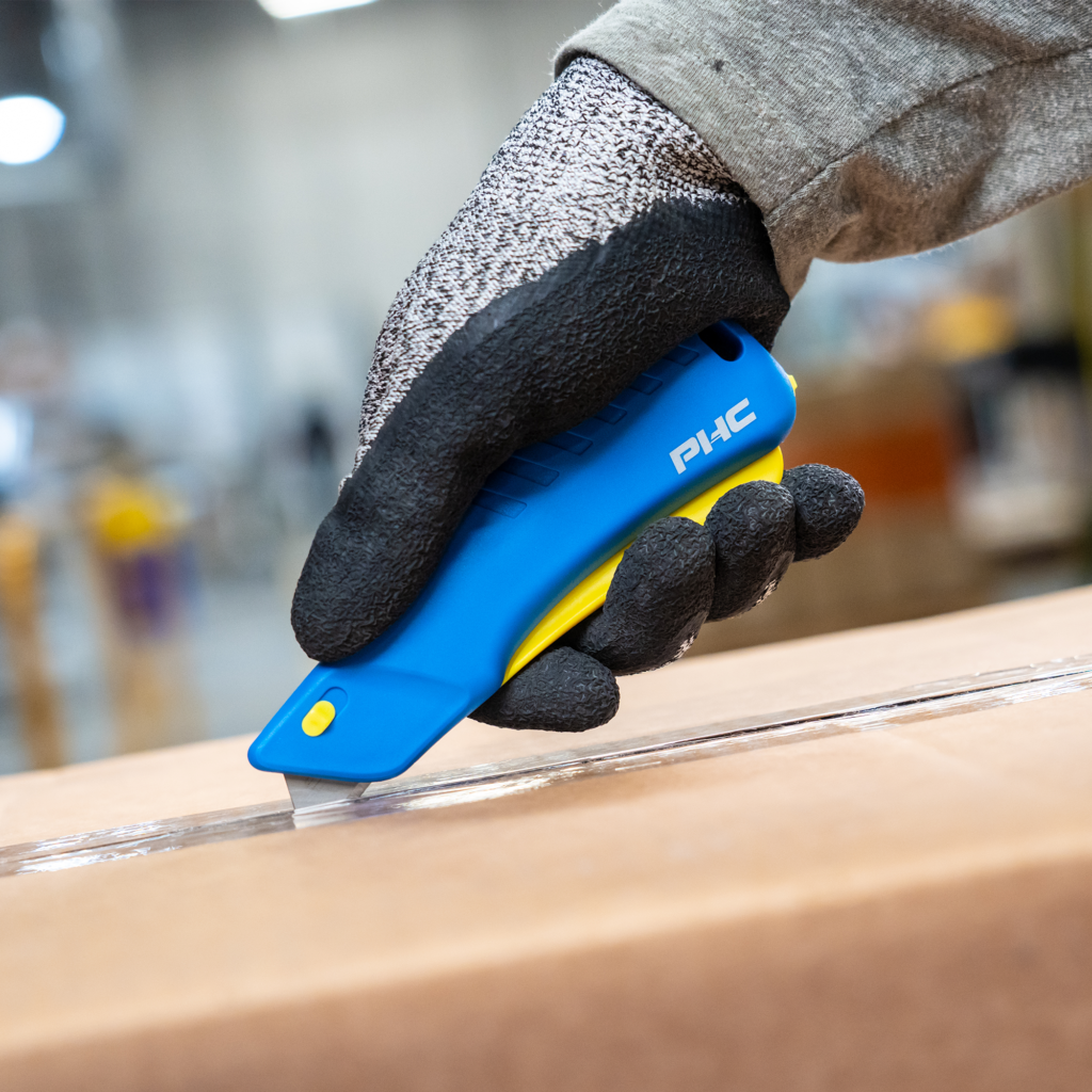 - Cuchilla auto retráctil de diseño compacto ultraliviano, con gatillo de apriete de mano.