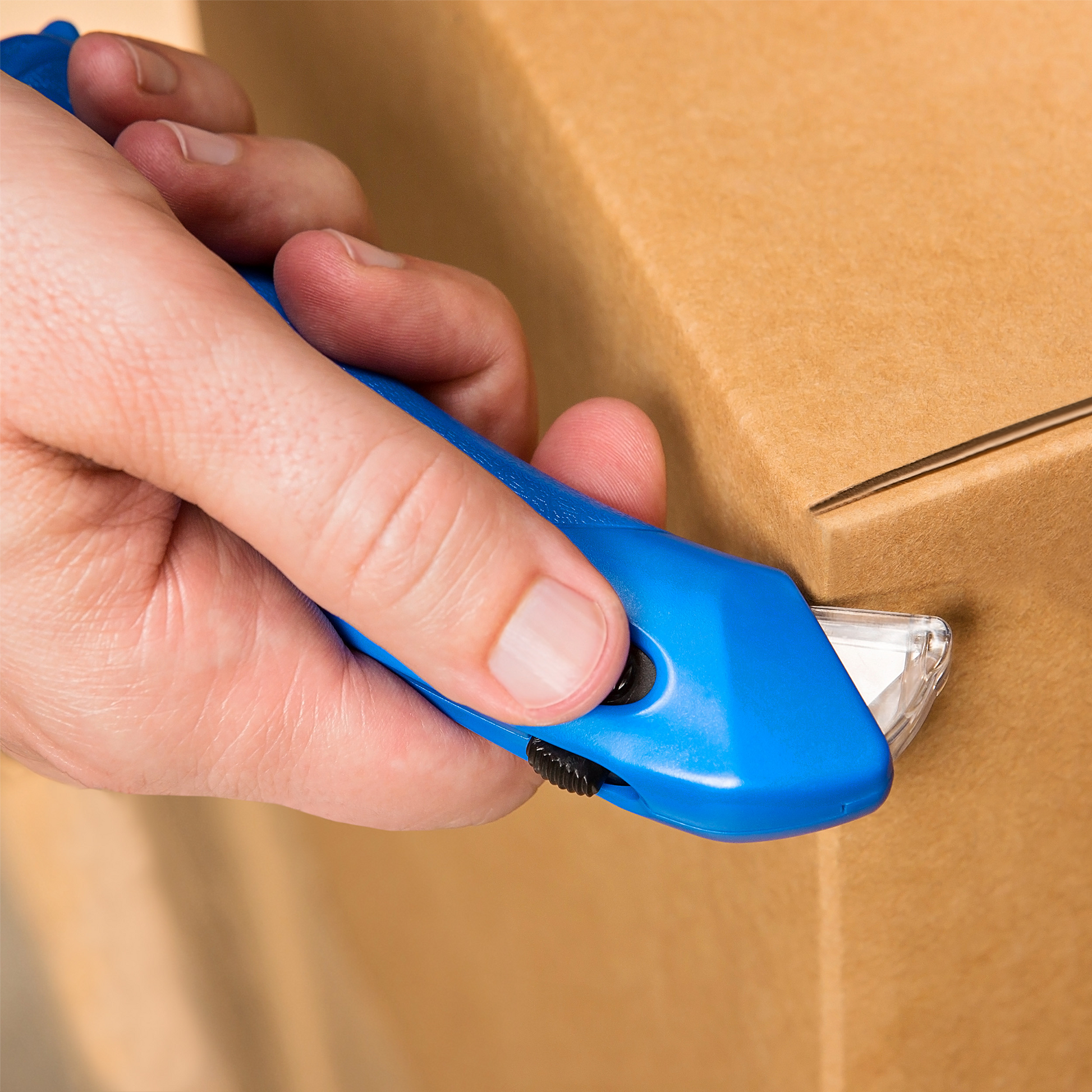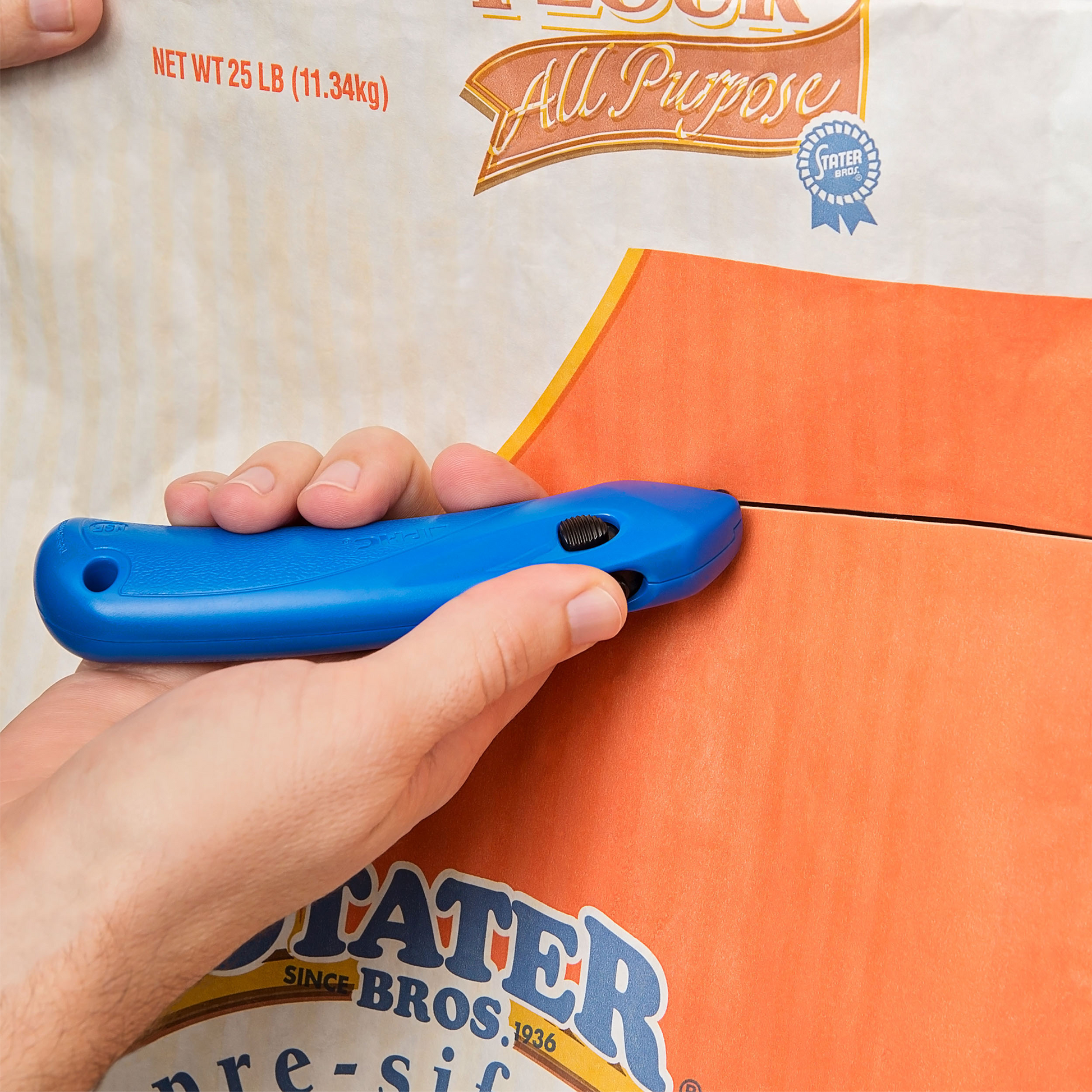 El cuchillo seguro para alimentos RSC432 cuenta con la certificación NSF y es ideal para instalaciones de fabricación y servicio de alimentos. Cuenta con una capucha de seguridad única de activación automática diseñada para mantener al usuario seguro. La capucha se cerrará automáticamente para cubrir la hoja al final de cada corte, eliminando prácticamente las lesiones. La cuchilla de punto de seguridad de este cortador no es extraíble, lo que evita posibles cuchillas sueltas en los lugares de servicio de alimentos. El uso del divisor de cinta sin cuchilla también reduce las lesiones. Para una mejor retención, compre con la funda UKH443 y el cordón de bobina CL36.