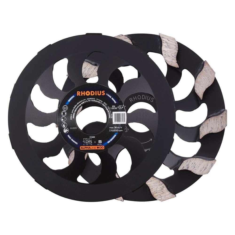 Se ha comprobado que la herramienta cumpla los requisitos de la norma EN13236 y de la oSa. Gracias a sus diamantes industriales de alta calidad, el DS41 es especialmente potente. Además, el esmeril de copa de diamante está soldado por láser.