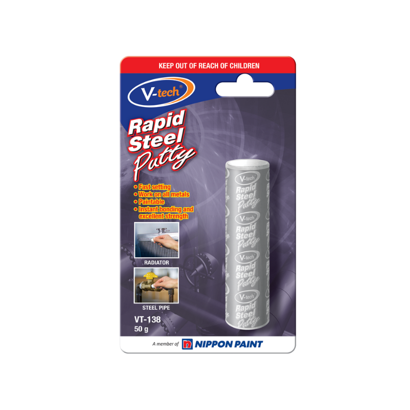 Una masilla epóxica reforzada con acero que se puede mezclar a mano y que se mezcla en solo un minuto para proporcionar reparaciones rápidas a artículos hechos de metales ferrosos y de aluminio. Una vez curado se puede taladrar, atornillar, mecanizar, limar o pintar. No se oxidará, encogerá ni se desprenderá. Es resistente al agua, temperaturas extremas y productos químicos como hidrocarburos, alcoholes, ésteres y ácidos diluidos.