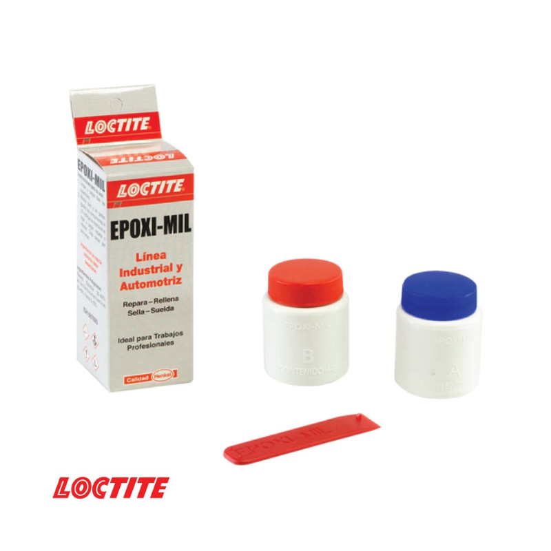 Loctite Epoxi-mil compuesto epóxico de dos partes grado industrial y automotriz.
