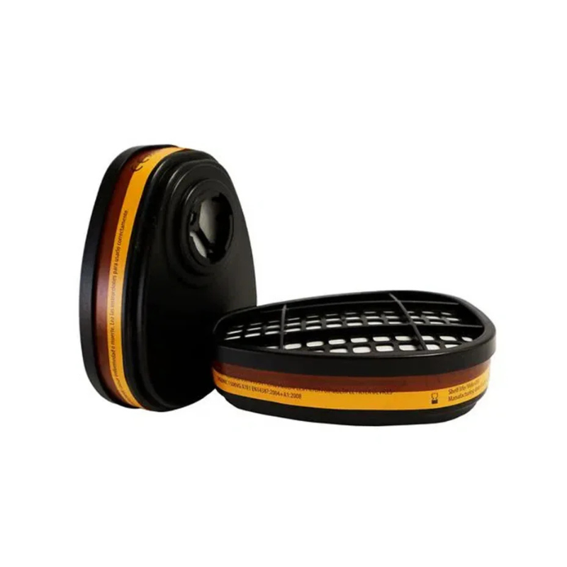 - Filtro o cartucho de carbón activado que protege al usuario de vapores orgánicos (Disolventes e Hidrocarburos) y gases ácidos (Dióxido de azufre, cloro, cluoruro de hidrógeno).