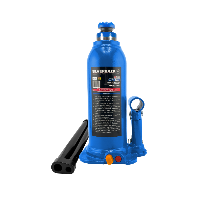 El Gato Hidráulico Tipo Botella Silverback SB11020 es la herramienta ideal para levantar vehículos y equipos de hasta 10 toneladas de manera segura y eficiente. Su diseño compacto y resistente lo hace perfecto para talleres, mecánicos y uso automotriz en general. Cumple con estándares internacionales de calidad ASME, garantizando confianza y durabilidad en cada operación.