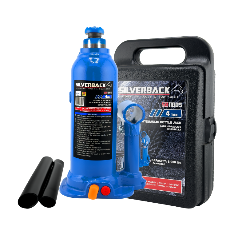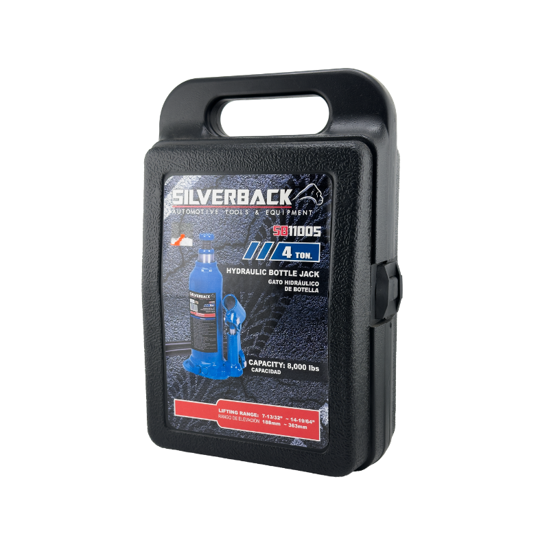 El Gato Hidráulico Tipo Botella Silverback SB11005 es la herramienta ideal para levantar vehículos y equipos de hasta 4 toneladas de manera segura y eficiente. Su diseño compacto y resistente lo hace perfecto para talleres, mecánicos y uso automotriz en general. Cumple con estándares internacionales de calidad ASME, garantizando confianza y durabilidad en cada operación.