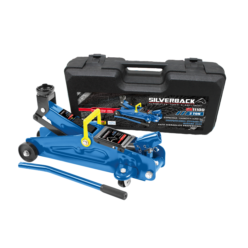 El Gato Hidráulico con Ruedas Silverback SB11100 (Hydraulic Trolley Jack) es la solución compacta y confiable para elevar vehículos de hasta 2 toneladas de forma segura y eficiente. Su construcción robusta y el diseño portátil con maletín lo hacen ideal para talleres, mecánicos y uso automotriz en general. Cumple con estándares de calidad ASME, ofreciendo desempeño consistente y durabilidad.