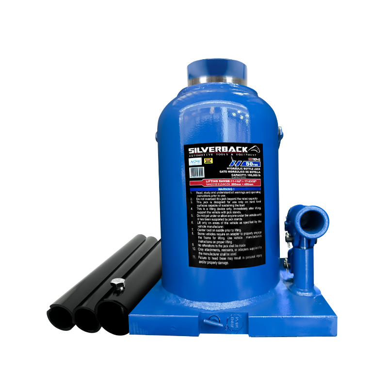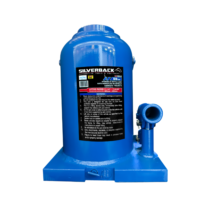 El Gato Hidráulico Tipo Botella Silverback SB11045 es la herramienta ideal para levantar vehículos y equipos de gran tamaño de hasta 50 toneladas de manera segura y eficiente. Su estructura robusta y duradera lo hace perfecto para aplicaciones industriales, maquinaria pesada y talleres especializados. Fabricado bajo estándares internacionales de calidad ASME, garantiza máxima resistencia, estabilidad y confianza en cada operación.