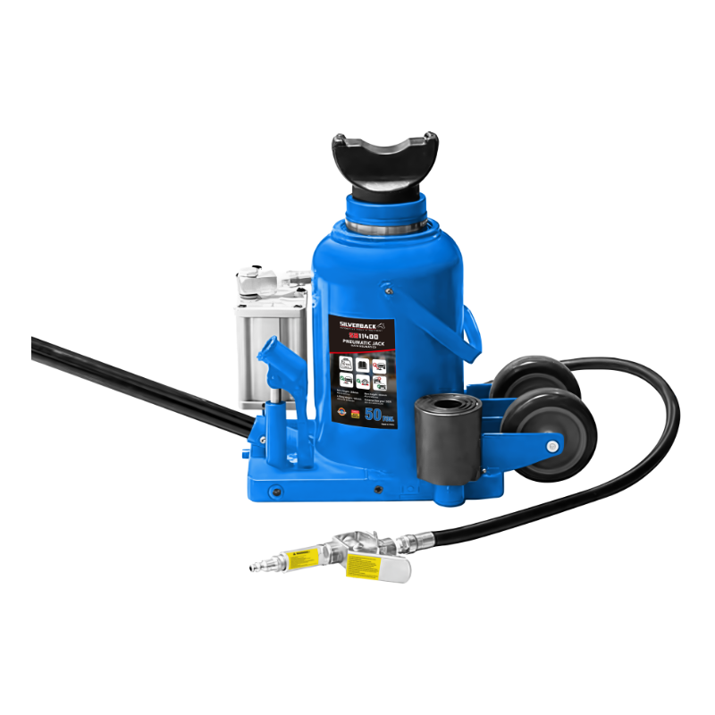 El gato hidráulico tipo botella SB11400 de SILVERBACK está diseñado para levantar cargas pesadas de hasta 50 toneladas, ideal para talleres automotrices, flotas de camiones, buses y maquinaria pesada. Su diseño robusto y portátil ofrece seguridad, estabilidad y alto rendimiento en trabajos de mantenimiento y servicio.