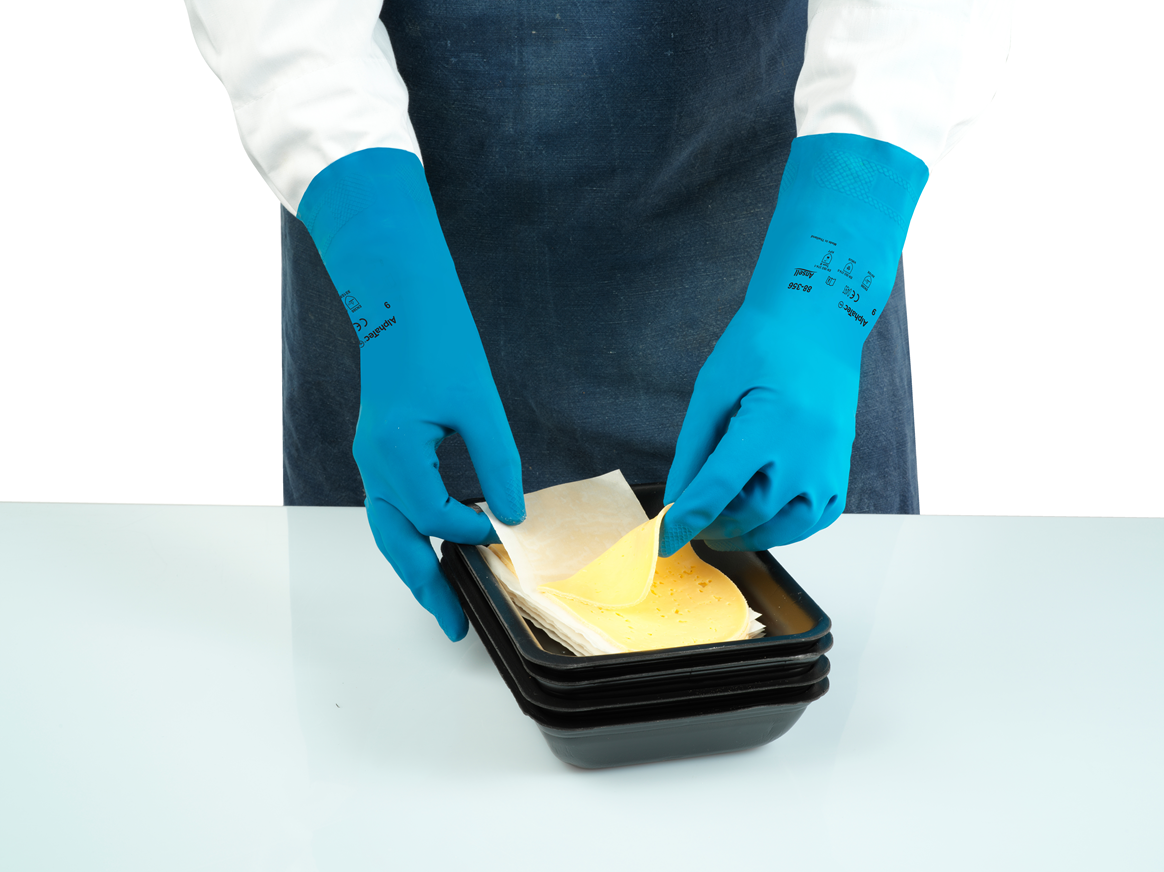 - Conformidad con la manipulación de alimentos: Los guantes industriales AlphaTec® 88-356 cumplen con las normas de manipulación de alimentos de la FDA.