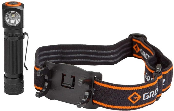 Linterna frontal recargable portátil Groz LED-240 para uso profesional. LED proporciona 1 W de potencia y una luz blanca densa y brillante de 130 lúmenes . El ancho del haz de luz es de 12° y su alcance es de 75 metros.