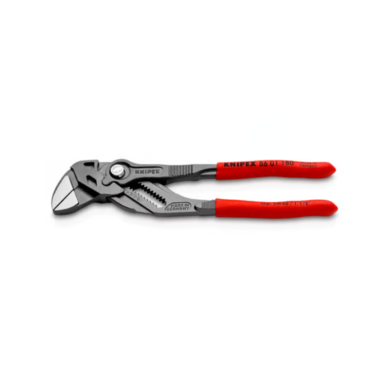 La tenaza llave combina numerosas funciones: sustituye un juego completo de llaves en tamaños métricos y en pulgadas, se puede ajustar de forma muy rápida y directa en la pieza de trabajo mediante pulsación de botón, además de admitir todos los anchos de boca de hasta 40 mm o 1 1/2 pulgadas gracias al ajuste continuo. El bulón de articulación se acopla de forma segura para evitar cambios involuntarios. Las suaves mordazas de agarre son paralelas entre sí y agarran la pieza de trabajo sin dañar los bordes o las superficies sensibles.