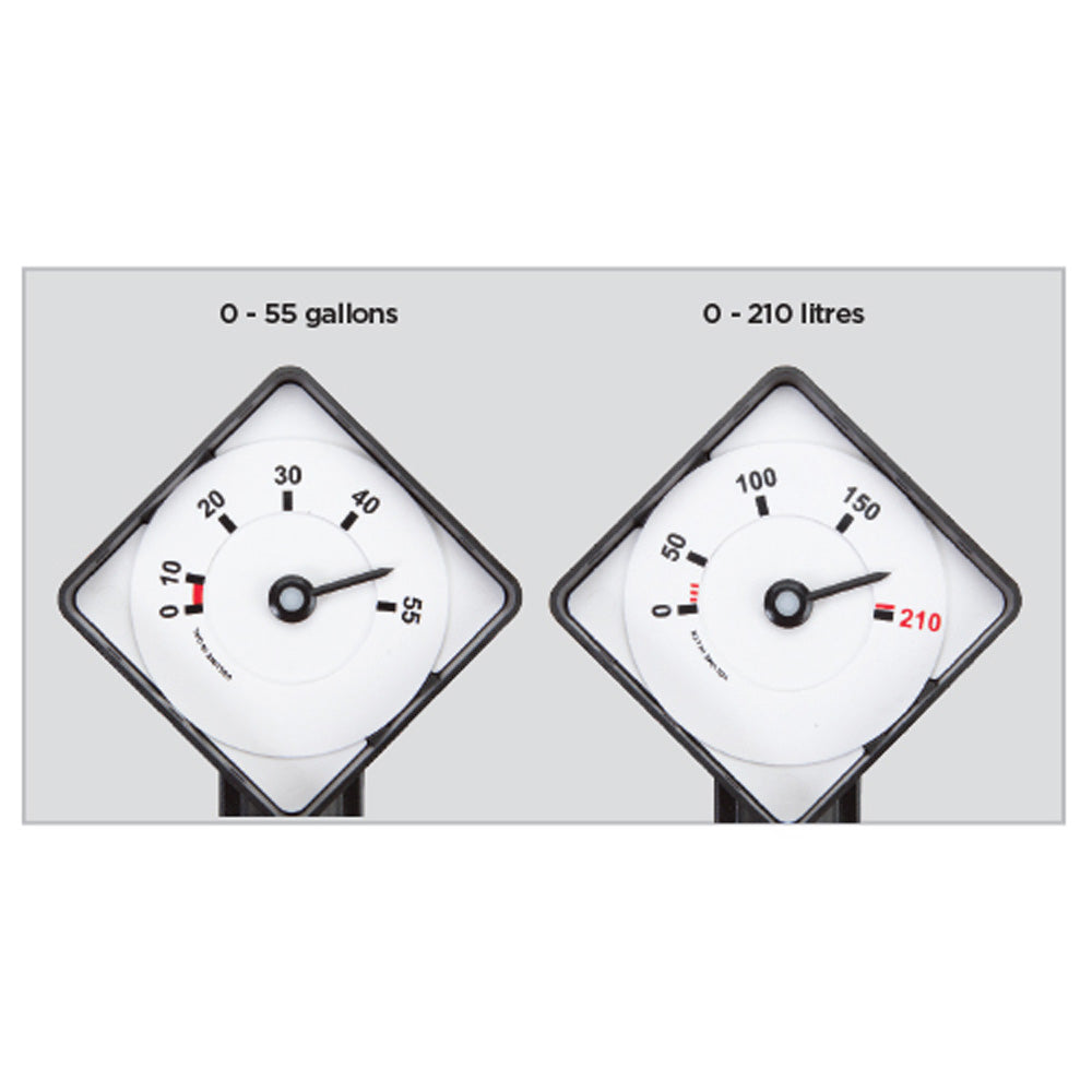 Alta calidad: construcción de polietileno y una pantalla reversible que muestra 0 210 Litros o 55 Galones.