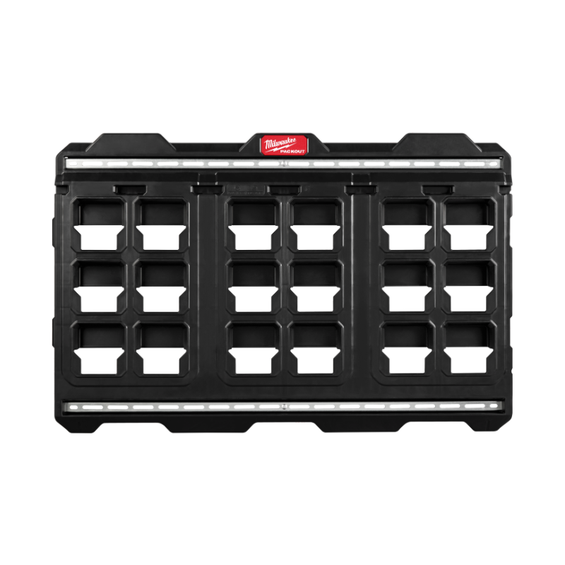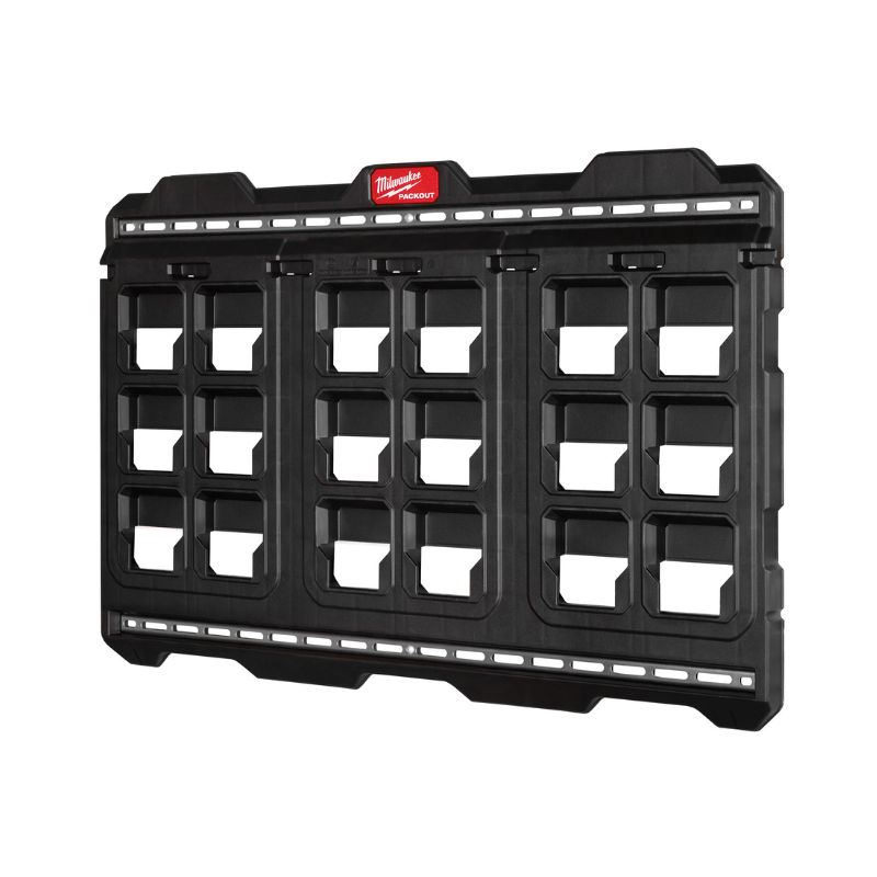 Esta placa de pared grande está fabricada con rieles de montaje reforzados con metal y polímeros resistentes a impactos que garantizan un montaje seguro en talleres, transporte y obra. Nuestra placa de pared grande tiene una capacidad de peso de 68 kg (150 lb) cuando se instala en el taller y de 34 kg (75 lb) cuando se instala en vehículos. Como parte del sistema de almacenamiento modular PACKOUT™, la placa de pared grande PACKOUT™ le permite personalizar su sistema de almacenamiento y mantener sus soluciones organizadas. MILWAUKEE® PACKOUT™ es el sistema de almacenamiento modular más versátil y duradero de la industria.